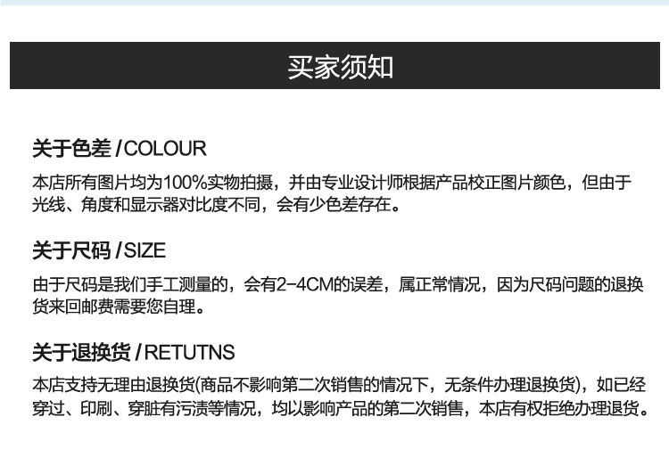 定制類服裝提供修改尺寸服務(wù)。
